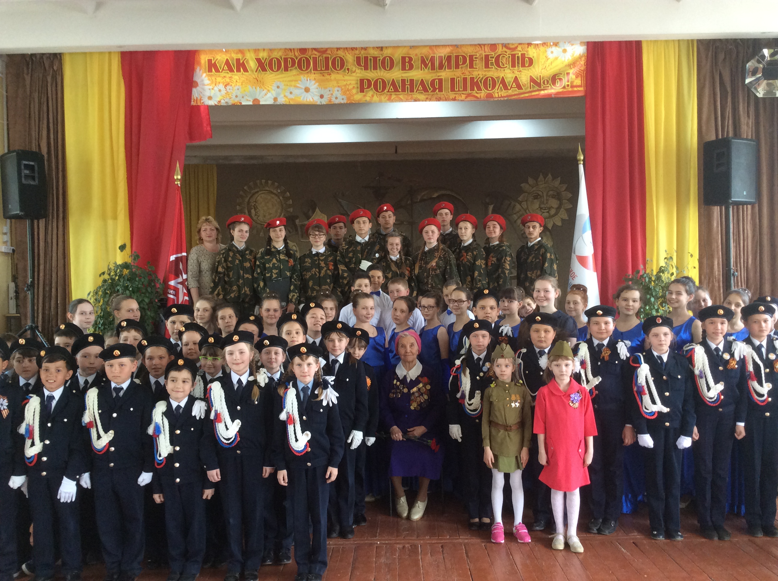 Передача копии Знамени Победы состоялась в торжественной обстановке. В актовом зале собралось много гостей, среди них почётная гостья - ветеран Великой Отечественной войны Стеклова Федора И